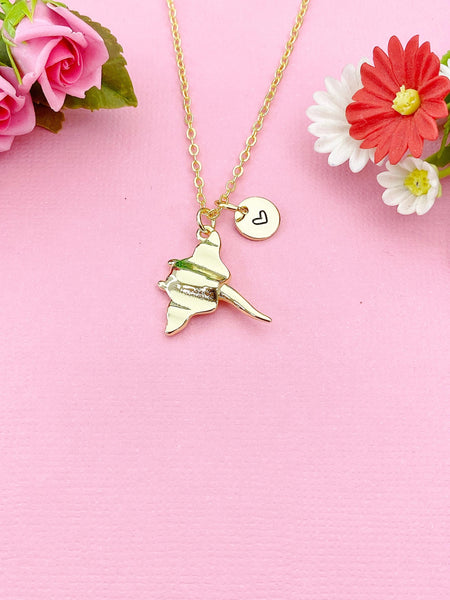 Gold Manta Ray Charm Necklace, Ocean Sea Jewelry, N6003