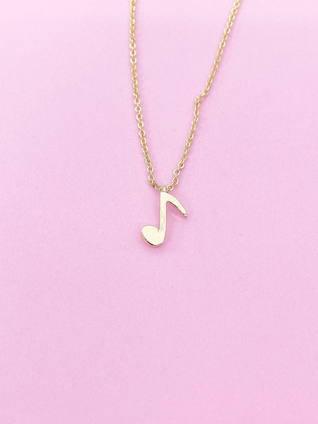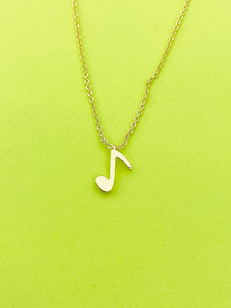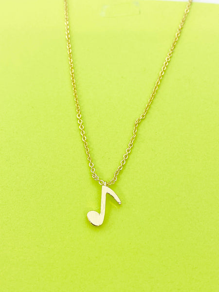 This is gold tone musical note charm on brass/stainless steel 18 inches chain.