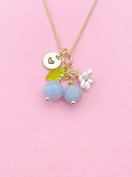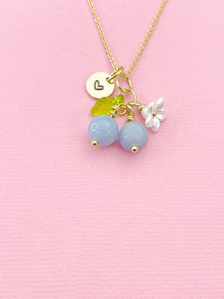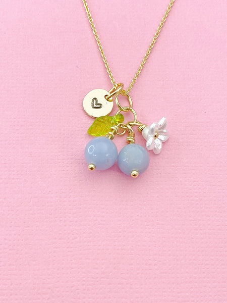 This is Natural Angelite charm with hand stamped initial charm on brass or stainless steel chain.