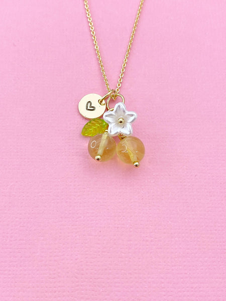 This is Natural Citrine charm with hand stamped initial charm on brass or stainless steel chain.