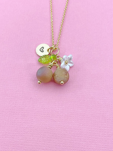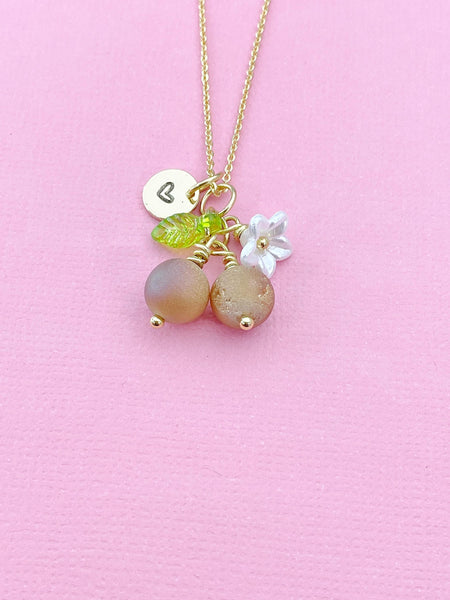 This is Natural Druzy Geode Agate charm with hand stamped initial charm on brass or stainless steel chain.