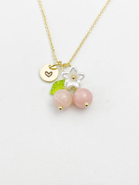 This is Natural Pink Opal charm with hand stamped initial charm on brass or stainless steel chain.
