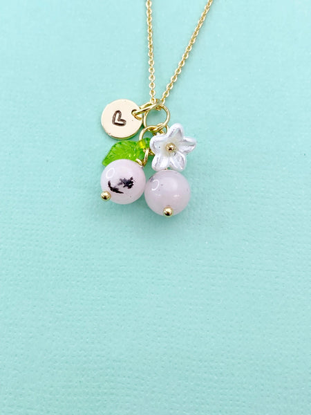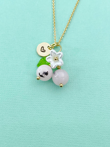 This is Natural Plum Blossom Jasper charm with hand stamped initial charm on brass or stainless steel chain.