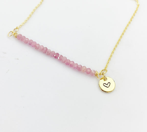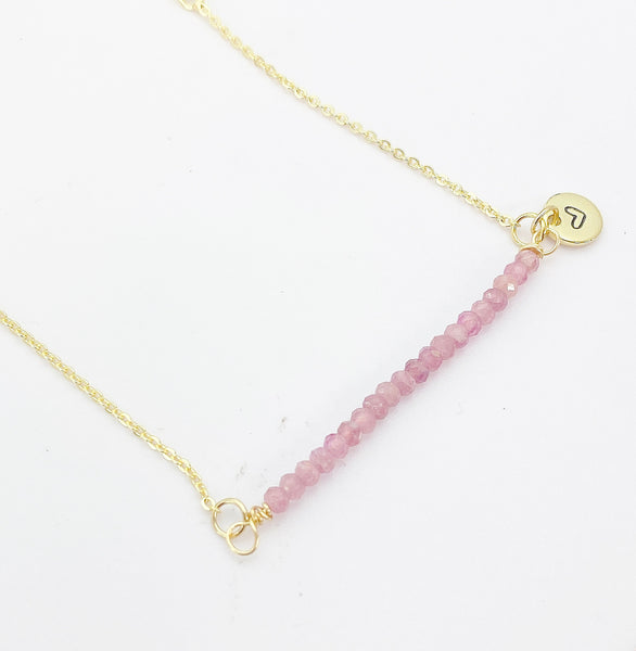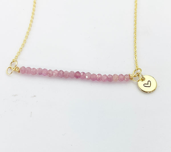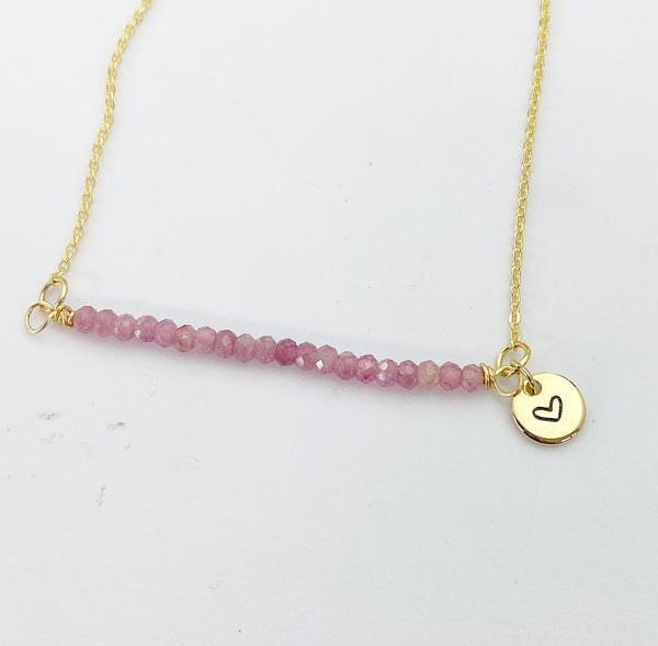 This is Natural Tourmaline charm with hand stamped initial charm on brass or stainless-steel chain.