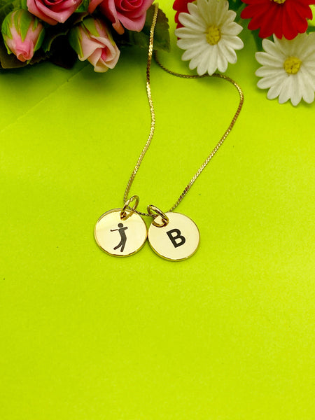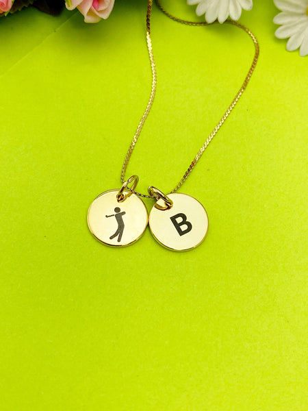 Gold or Silver Golf Player Necklace Personalized Customized Monogram Made to Order Jewelry, D457