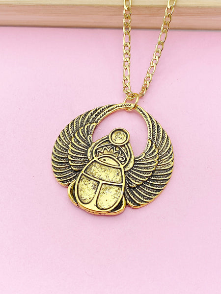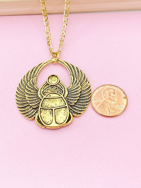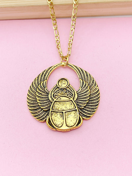 Gold or Silver Scarab Charm Necklace, Egyptian Scarab Charm, Bug Insect Charm, N2739