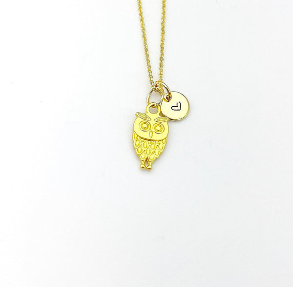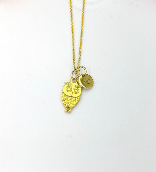 This is a gold -tone Owl charm with hand stamped initial charm on brass/stainless steel 18 inches chain.