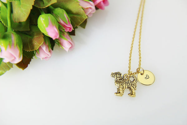 This is a gold-tone Portuguese Water Dog charm with hand stamped initial charm on a stainless steel chain. (NOT TARNISH or GREEN) You able to choose initial from a drop-down menu.
