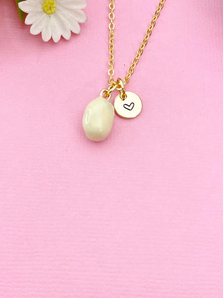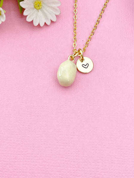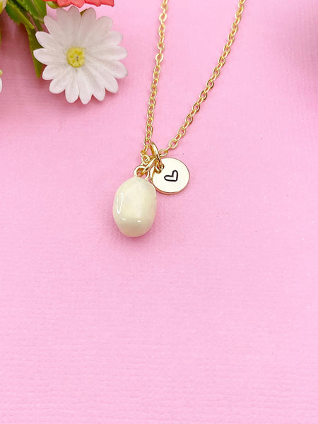 This is a gold -tone potato charm with hand stamped initial charm on brass or stainless steel 18 inches chain.