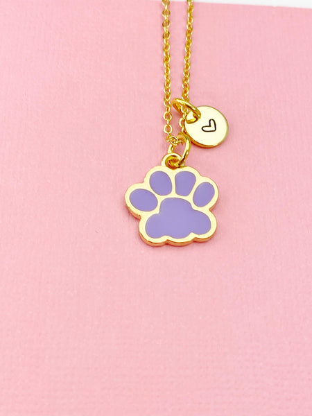 Gold Purple Paw Print Charm Necklace Dog Cat Pet Paw Prints Gift, N5493B