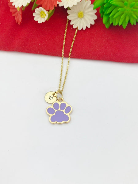 Gold Purple Paw Print Charm Necklace Dog Cat Pet Paw Prints Gifts Ideas Personalized Customized Made to Order, BN5493