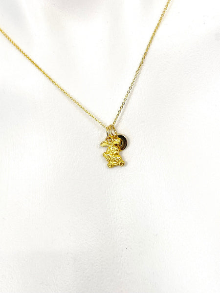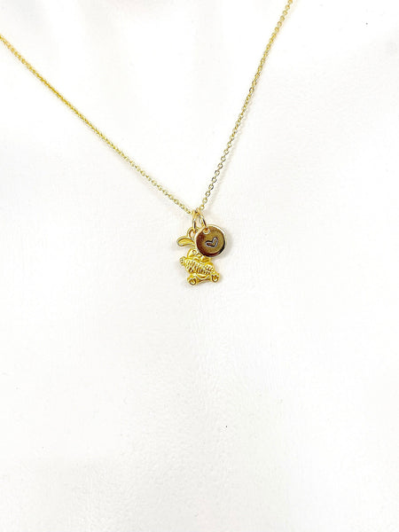 This is a gold -tone Rabbit Holding Carrot charm with hand stamped initial charm on brass/stainless steel 18 inches chain.
