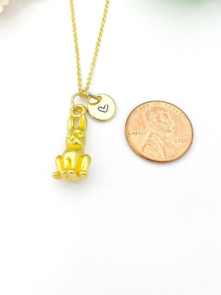 This is a gold -tone Rabbit charm with hand stamped initial charm on brass/stainless steel 18 inches chain.