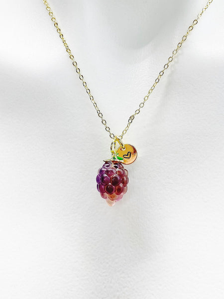 Gold Raspberry Necklace, Natural Gemstone Fluorite Fruit Charm, Personized Initial Necklace, N4985