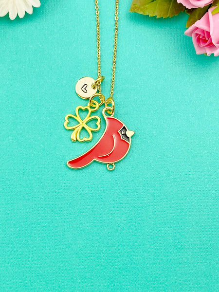 This is gold tone bird and clover charm with hand stamped initial charm on brass/stainless steel 18 inches chain.