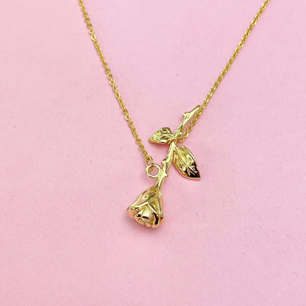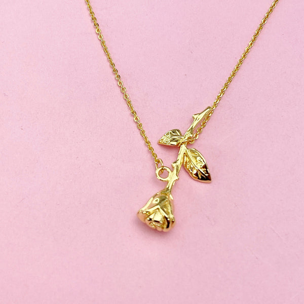 Gold Rose Flower Necklace, Gift for Girlfriend from Boyfriend, Anniversary, Valentine's Day, Birthday, N3061