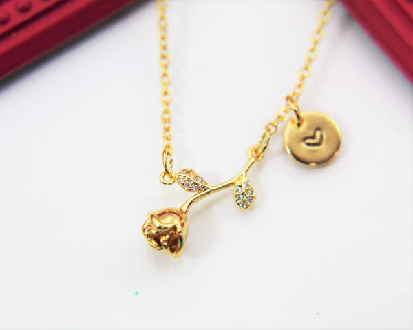Gold Rose Necklace, Cubic Zirconia Necklace, Mother's Day Gift, Girlfriend Gift, Valentin, Birthday, Gift Gardener, Plant Lover Gift, N3319