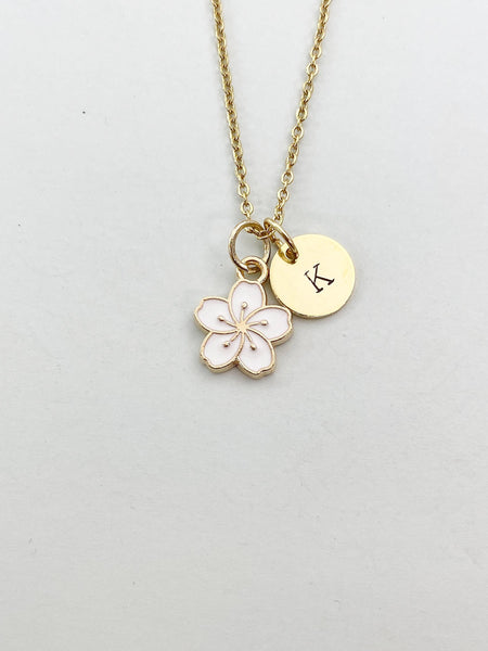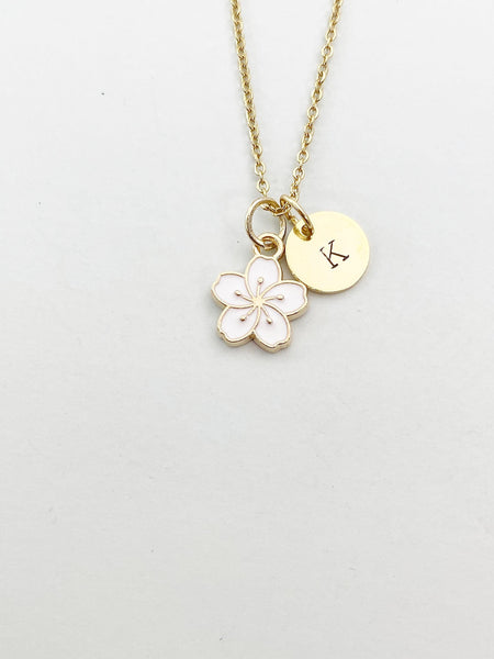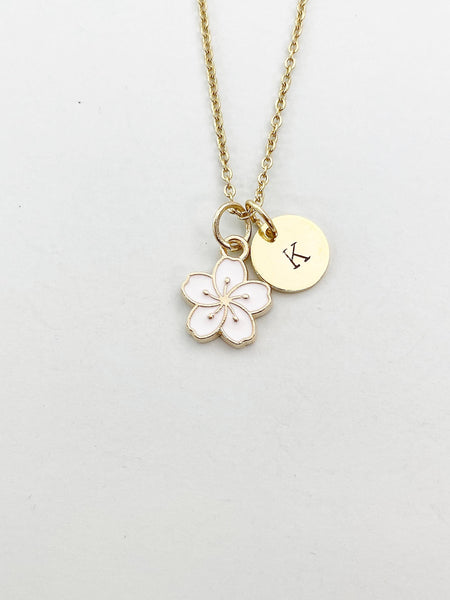 Gold Sakura Flower Charm Necklace, White Cherry Blossom, N5913