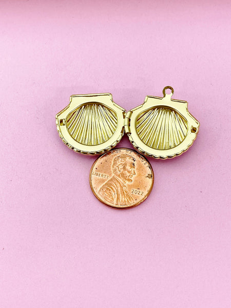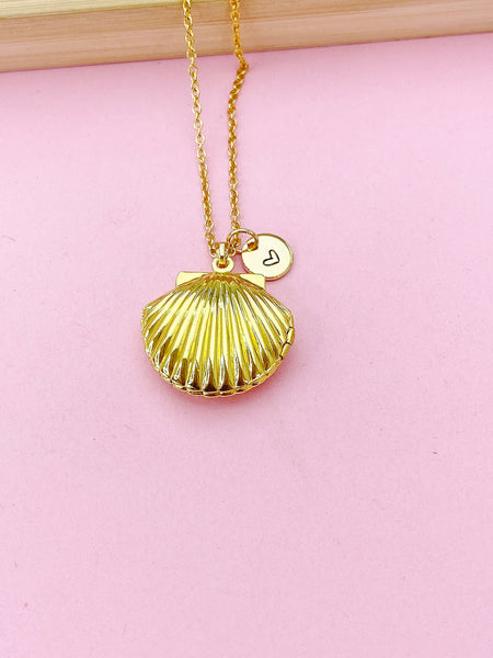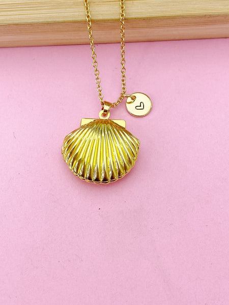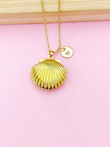 This is a gold-tone brass locket charm with hand stamped initial charm on brass or stainless-steel chain.