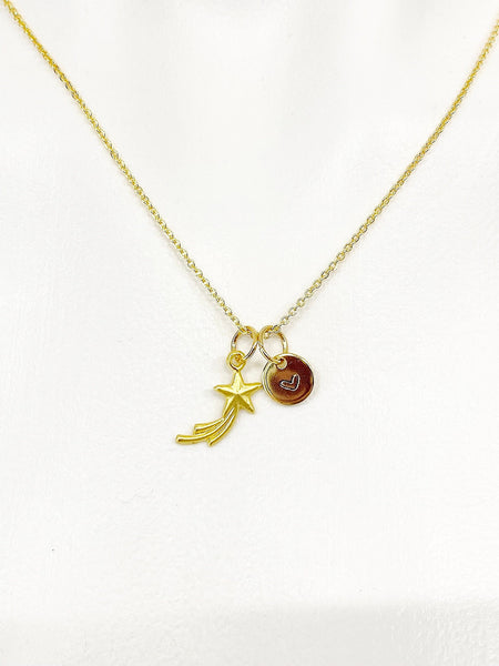 This is a gold -tone Shooting Star charm with hand stamped initial charm on brass/stainless steel 18 inches chain.