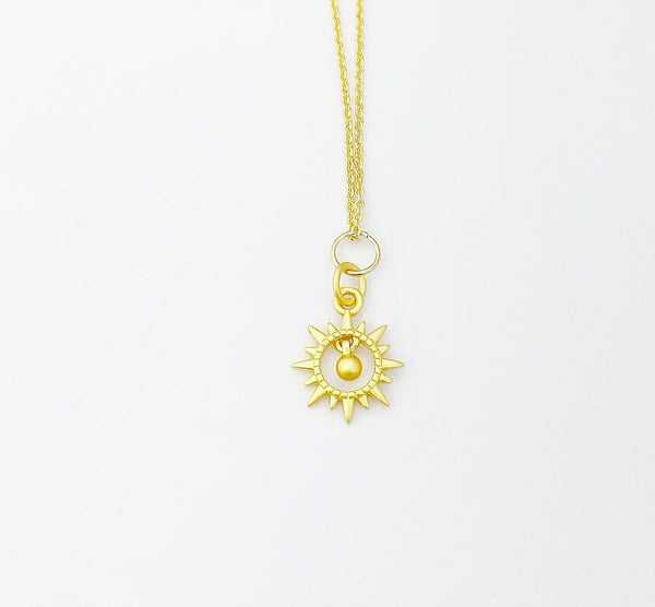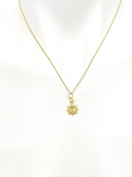 This is a gold -tone Sun & Bell charm on brass/stainless steel 18 inches chain.