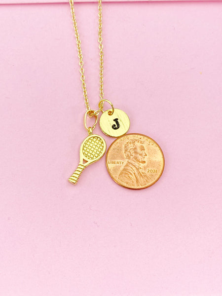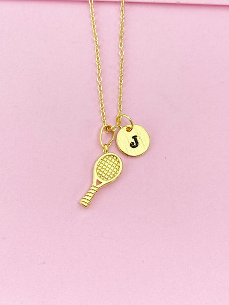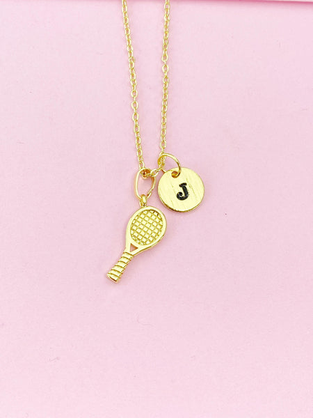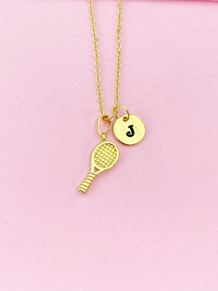 Gold Tennis Racket Charm Necklace, Preconized Gift, N4206