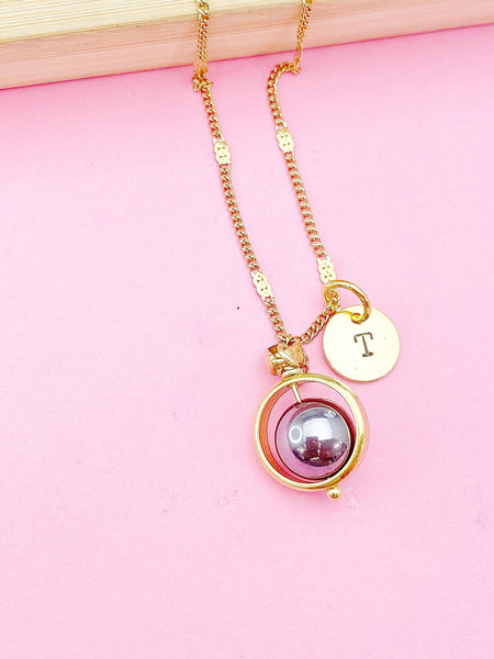 This is a gold-tone Terahertz charm with hand stamped initial charm on stainless-steel chain.