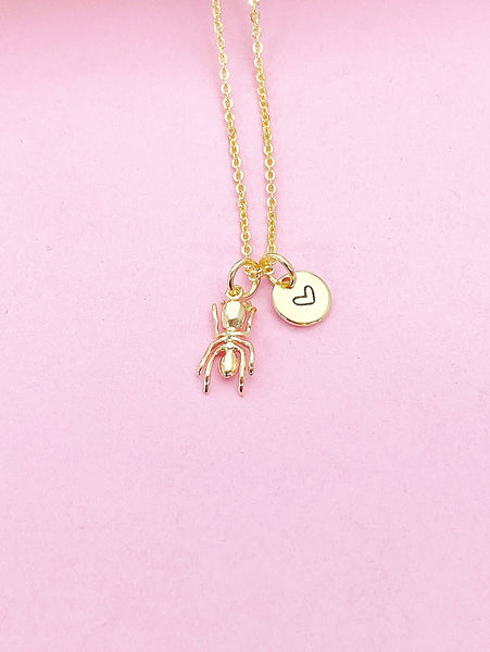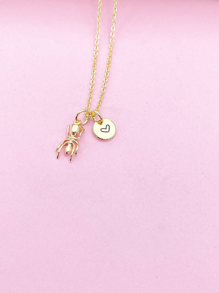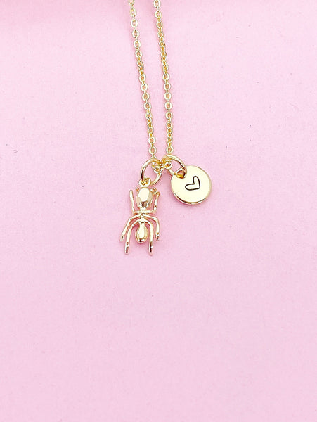 This is gold tone TINY ant charm with hand stamped initial charm on brass/stainless steel 18 inches chain.