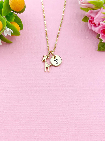 This is a gold tone TINY Giraffe charm on brass or stainless-steel chain.