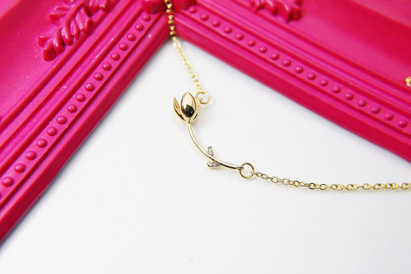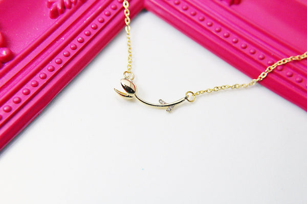 Gold Tulip Charm Necklace, 18K Gold Plated Flower Tulip Charm, Gradinger Gardening Gift, Personalized Custom Gift