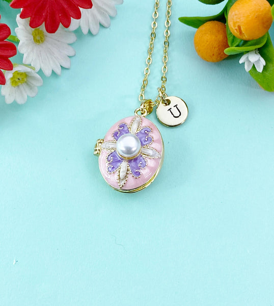 This is gold tone locket charm with hand stamped initial charm on brass/stainless steel 18 inches chain.