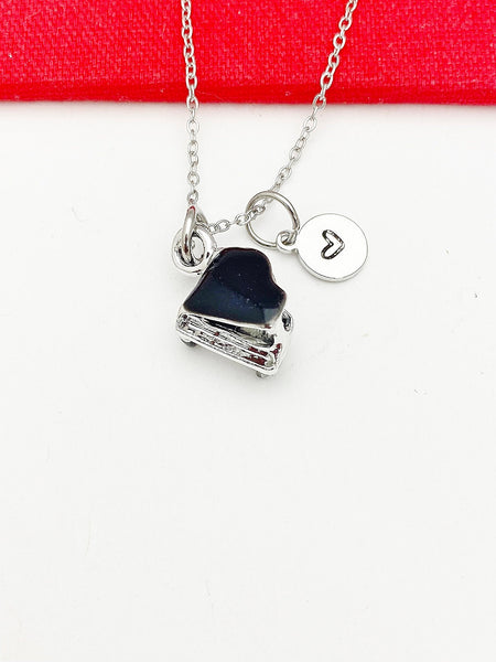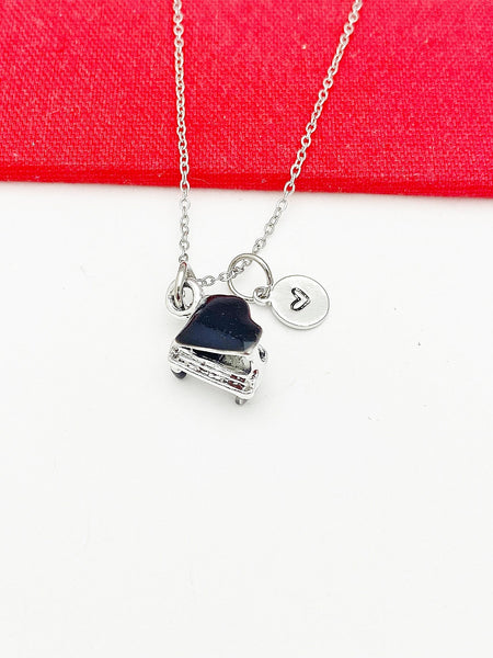 Grand Piano Necklace, Piano Music Gifts, Valentine Gift, Birthday Gift, Personized Initial Necklace,