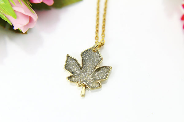 Gray Maple Leaf Necklace, Gold Maple Leaf Charm Necklace, Maple Leaf Charm, Fall Autumn Jewelry Gift, Personalized Christmas Gift, N840