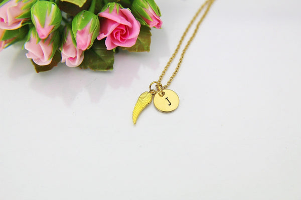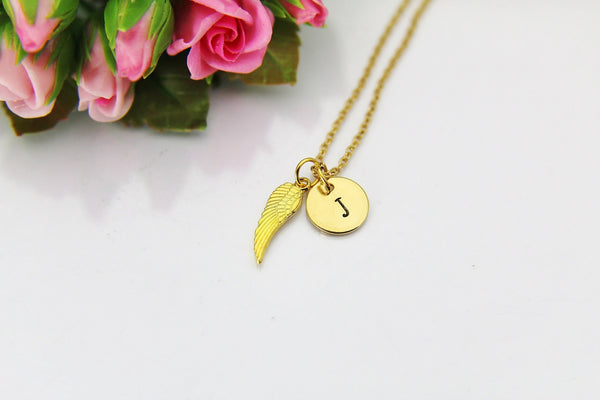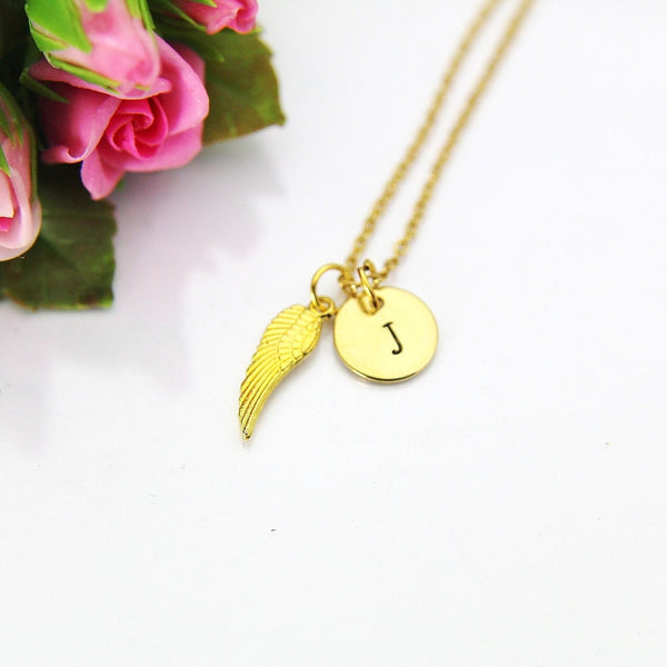 This is a gold - tone angel wing charm with hand stamped initial charm on a chain. You able to choose initial from a drop-down menu. You able to choose silver or gold necklace from a drop-down menu