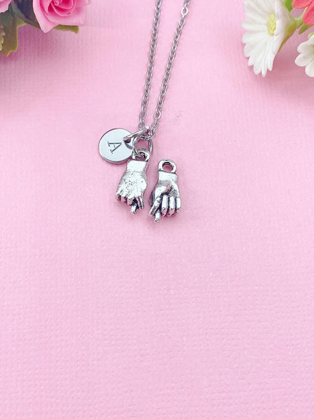 This is a silver -tone hand charm with hand stamped initial charm on brass/stainless steel 18 inches chain or keyring.