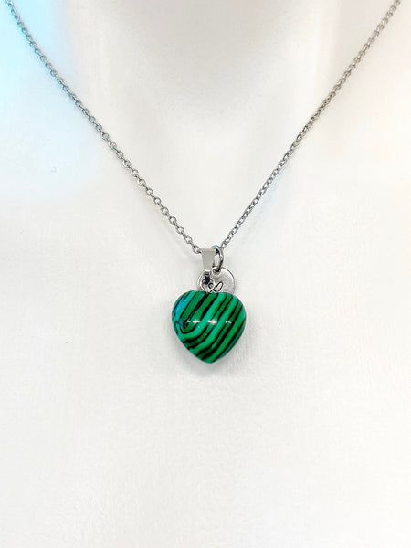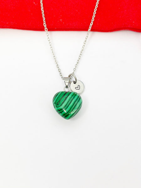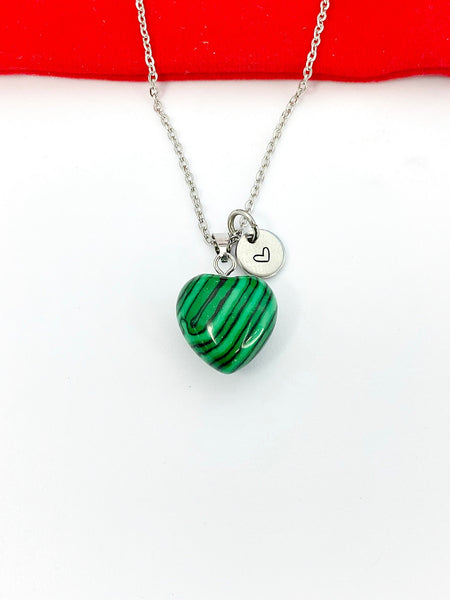 This is a synthetic Malachite pendants with hand stamped initial charm on stainless steel 18 inches chain.