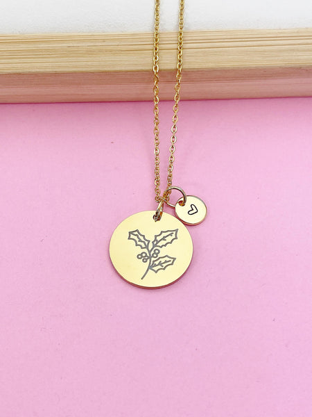 This is a unique engraving holly and initial charm on stainless steel 18 inches necklace chain