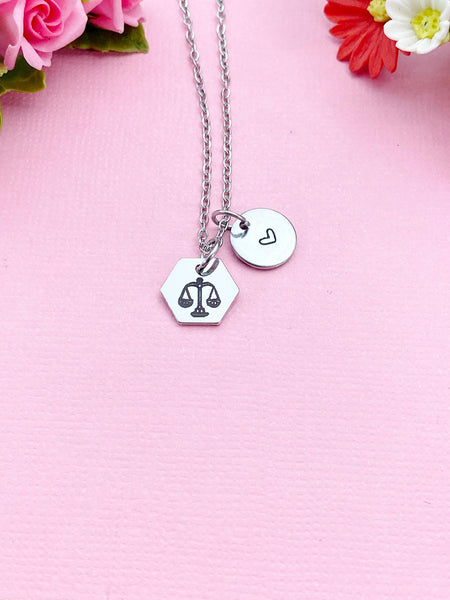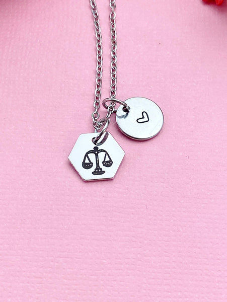 This is a unique engraving Libra Scales sign and initial charm on stainless steel 18 inches necklace chain