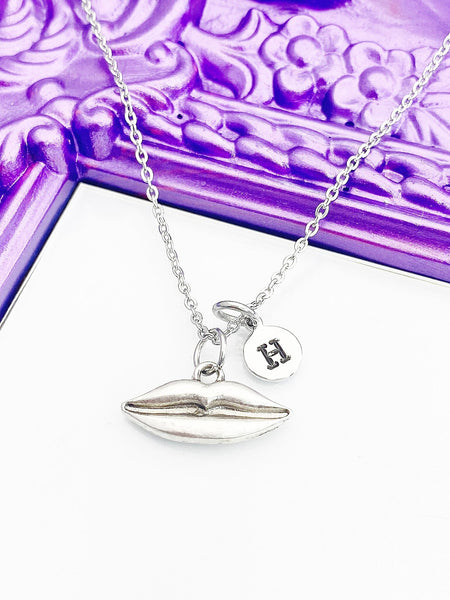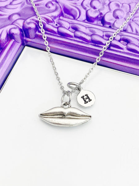 Lip Necklace, Best Christmas Gift for Makeup Artist, Personized Initial Jewelry,