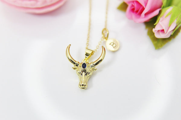 Longhorn Necklace, Ox Cubic Zirconia, Christmas Gift, Mentor Gift, Appreciation Gift, Thank You Gift, Secret Santa, Personalized