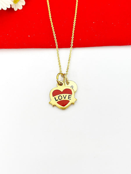 This is a stainless-steel Love charm with hand stamped initial charm on a stainless-steel chain.