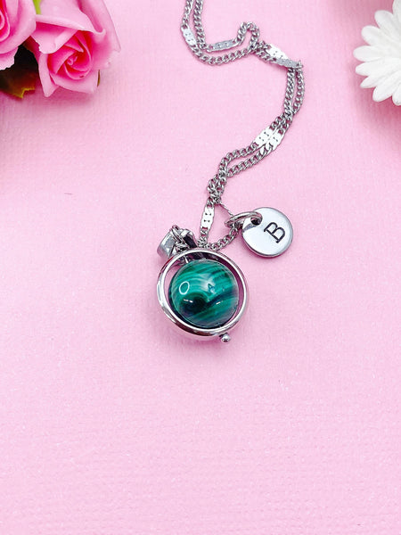 Malachite Necklace, Natural Gemstone Jewelry, Spinner Gold or Silver Necklace, N5767S