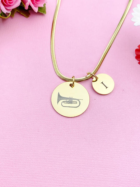 This is a unique engraving Mellophone and initial charm on stainless steel 18 inches necklace chain