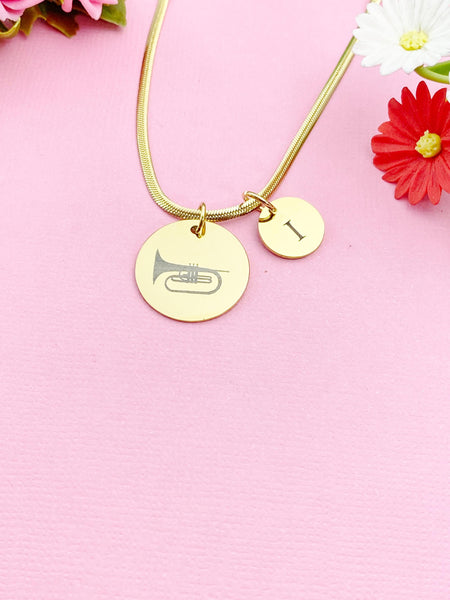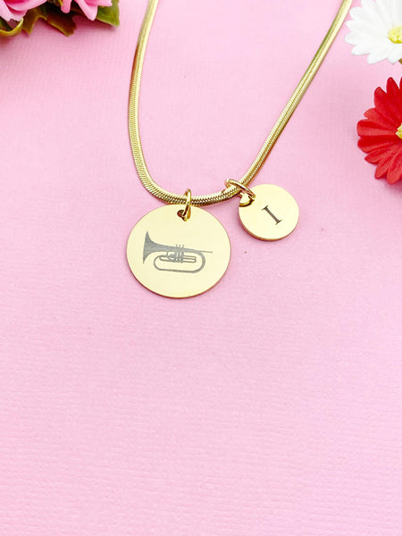 Mellophone Charm Necklace, Silver or Gold Stainless Steel Musician Necklace, D496