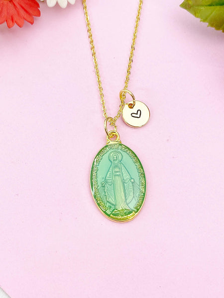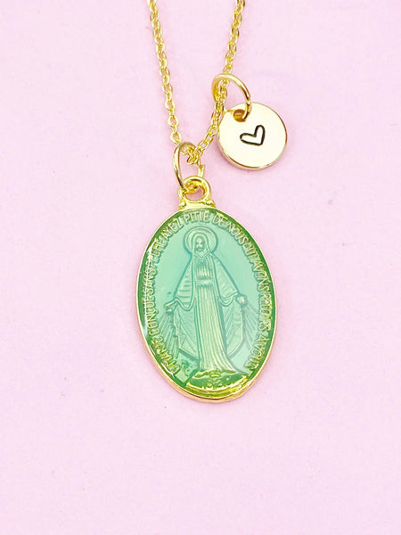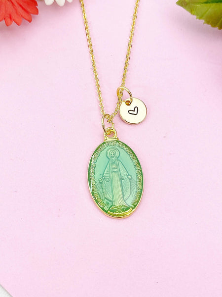 Miraculous Mary Charm Gold Necklace, Green Mint, N6187A