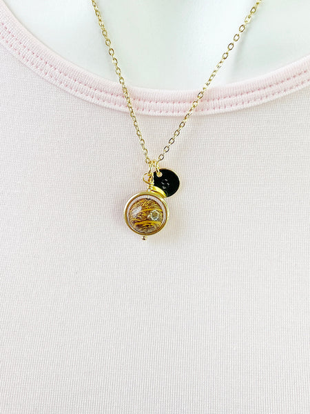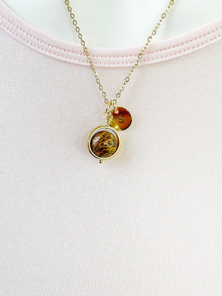 This is a Natural Elephant Skin Jasper/Miriam Stone/Calligraphy Stone charm with hand stamped initial charm on brass or stainless steel chain.