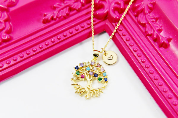 Mom Necklace Gift, Gold Tree Necklace Gift, Mother Day's Necklace Gift, Mom Gift, Grandma Gift, Personalized Initial Necklace Gift
