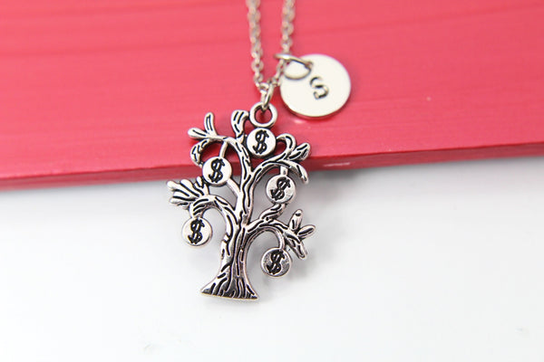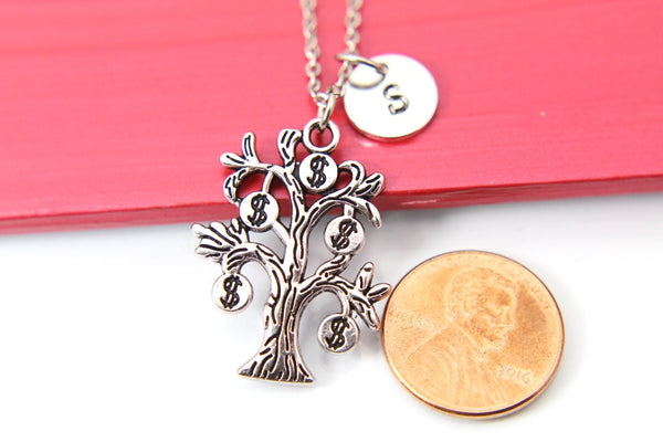 Money Tree Necklace, Money Tree Dollar Sign Necklace, Best Birthday Gift, Retirment Gift, Personalized Initial Gift,