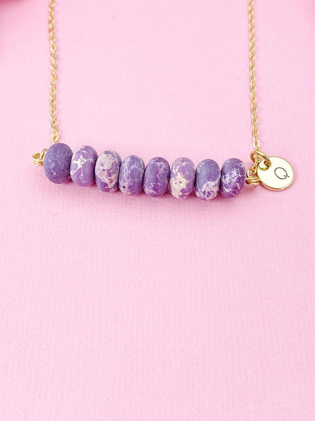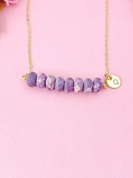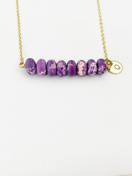 This is Natural Regalite/Imperial Jasper/Sea Sediment Jasper bar with hand stamped initial charm on brass or stainless steel chain.