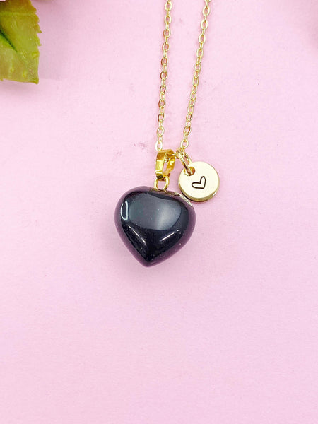 This is a gold tone Natural Obsidian charm with hand stamped initial charm on brass/stainless steel chain.